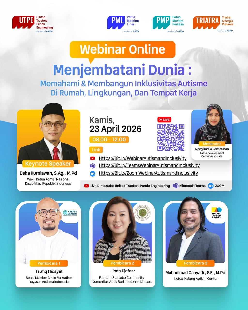 Dalam upaya meningkatkan pemahaman masyarakat tentang inklusivitas autisme, Malang Autism Center melalui Founder-nya, Mohammad Cahyadi, berkesempatan menjadi salah satu pembicara dalam webinar online yang diselenggarakan oleh United Tractors Pandu Engineering. Mengangkat tema besar “Menjembatani Dunia: Memahami & Membangun Inklusivitas Autisme di Rumah, Lingkungan, dan Tempat Kerja”, sesi yang dibawakan oleh beliau secara khusus menyoroti bagaimana menciptakan safe place bagi individu dengan autisme melalui komunikasi efektif dan sistem dukungan yang tepat.